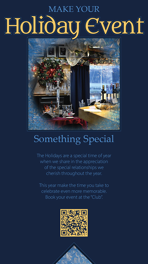 The RNYC Clubhouse is transformed during the Holidays into a warm and richly decorated setting with an attention to detail your guests will appreciate. That same attention is reflected in courteous and friendly service, sumptuous table settings, and attentive food presentation that makes for a truly festive and memorable occasion.